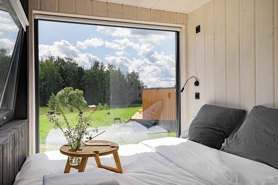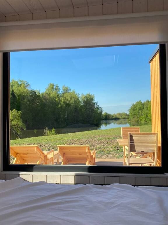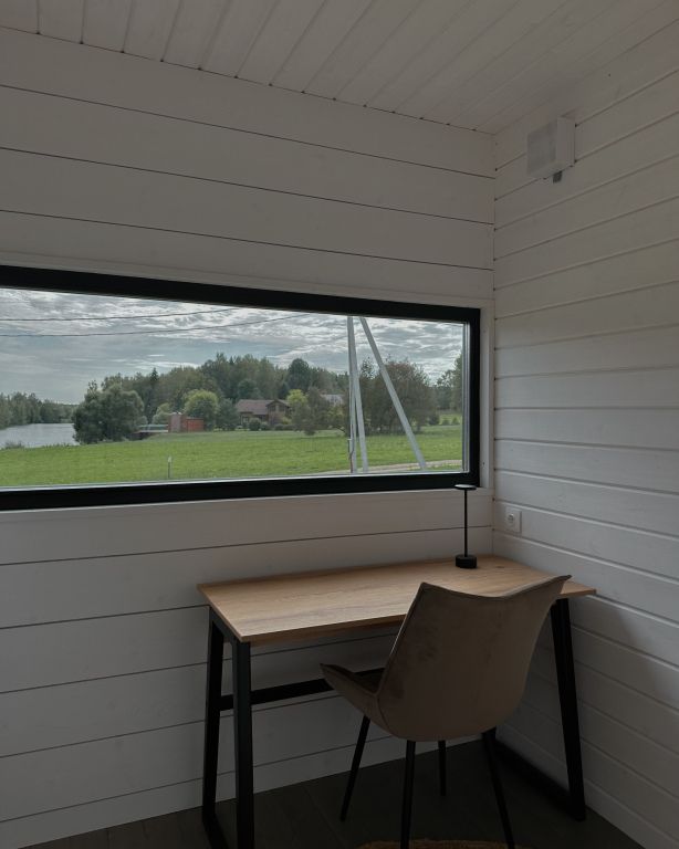 Семейный отдыхДостоинстваСоветую всем, кто мечтает отдохнуть от городской суеты. Пространство продумано до мелочей. Очень уютно. Панорамные окна открывают потрясающий вид на лес с прудом.
