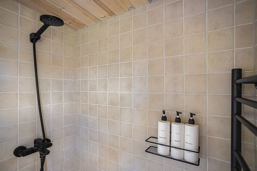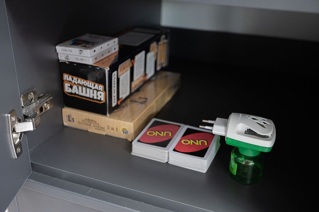 В уютной студии площадью 15 квадратных метров расположены две раздельные кровати, которые при желании можно объединить, или одна большая двуспальная кровать. Для максимального комфорта предусмотрен обогреватель, вместительный шкаф и москитная сетка на окнах. В ванной комнате гости найдут все необходимое: душевую кабину, фен и тапочки.