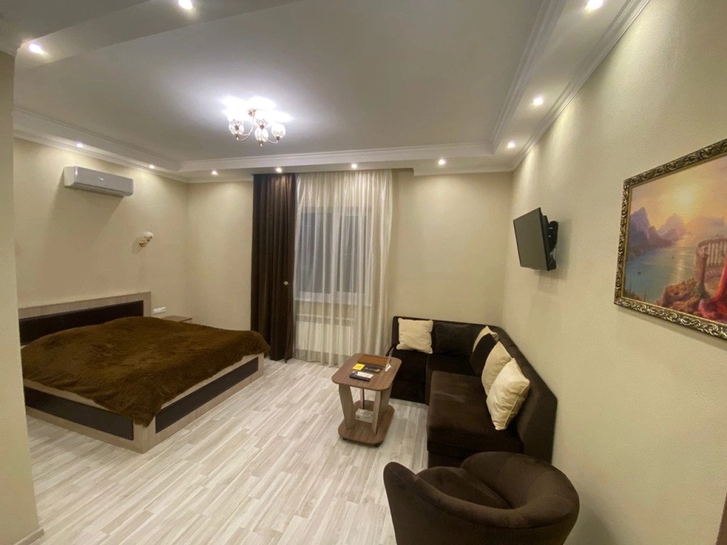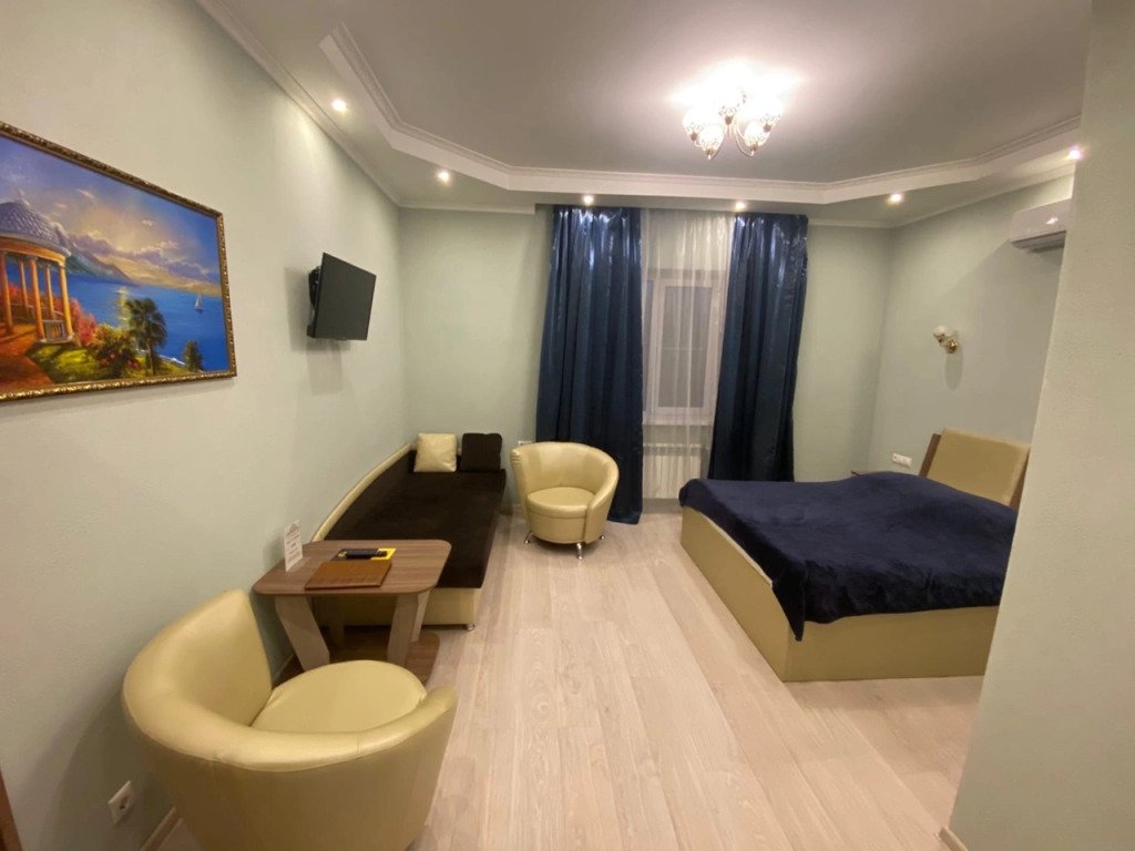 Номер уютно обставлен и оснащён необходимым, чтобы отдохнуть после долгого и насыщенного дня. Имеются телевизор и халат. Перечисленные услуги есть не во всех номерах.