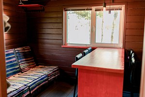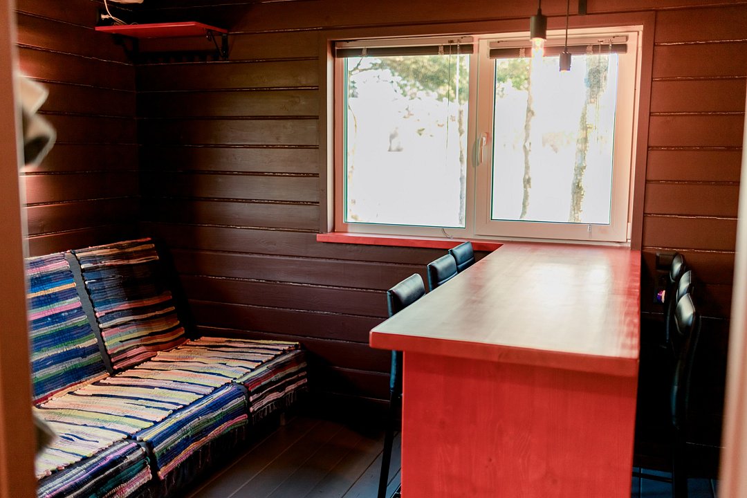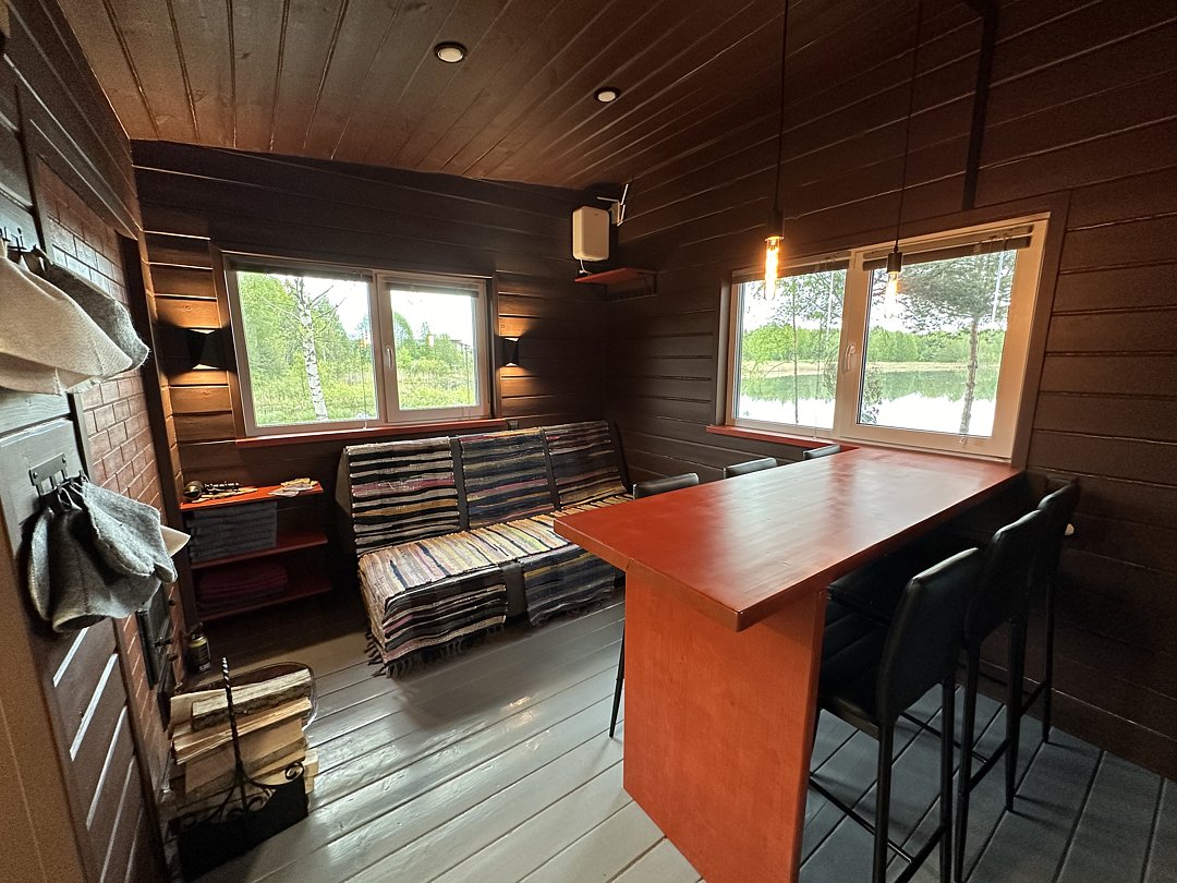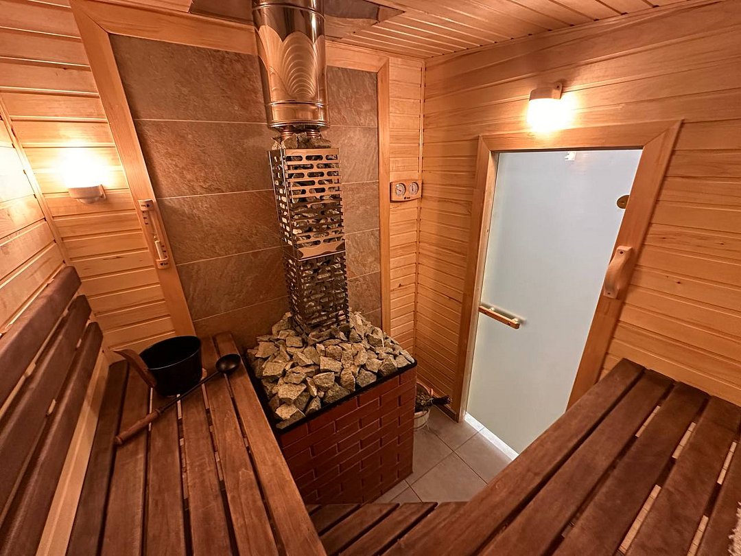 Гости могут насладиться баней на острове, откуда открывается живописный вид на озеро. Внутри расположена уютная комната отдыха с барным столом и мягким диваном, а парная оснащена каменкой из сибирского жадеита.