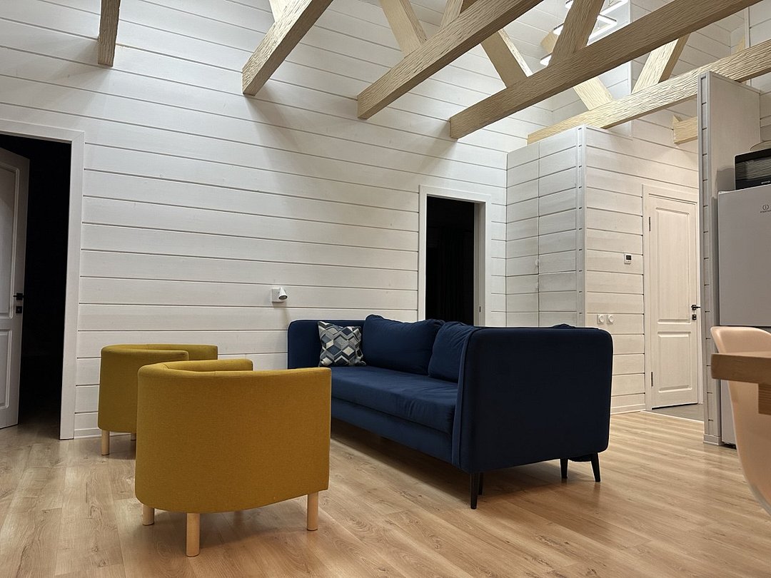 Самый светлый и просторный дом до семи гостей прямо на берегу озера зарядит Вас энергией и вдохновением! Две отдельные спальни, просторная кухня-гостиная, два санузла, собственная видовая мангальная зона, крытая парковка на два автомобиля.