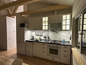 Гости могут отдохнуть на открытой террасе, откуда открывается потрясающий вид на озеро. Специально оборудованная зона для барбекю станет отличным местом для вечерних посиделок на свежем воздухе. Дом оснащен полностью укомплектованной кухней, что позволяет готовить еду и наслаждаться ею на фоне природы.