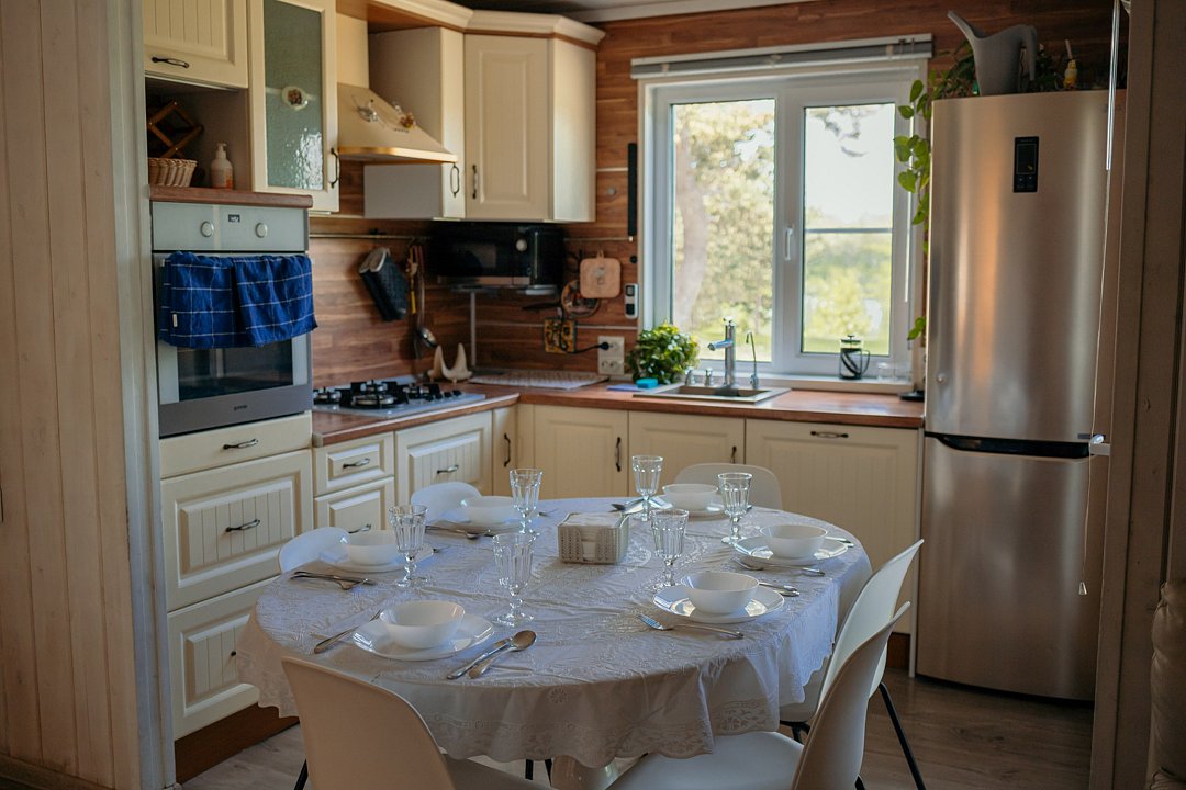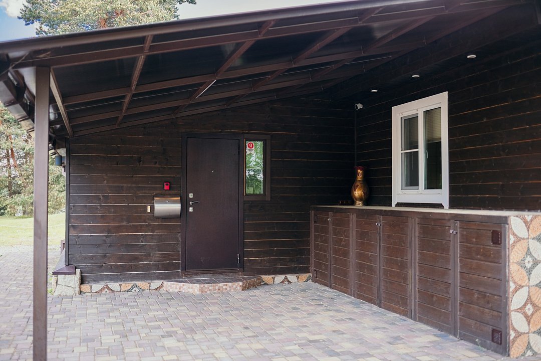 Организовано бесконтактное заселение. Есть баня на дровах. Полностью оборудованная крытая мангальная зона, детская площадка и склон для катания на санках (зимой). Территория в 60 соток, дом окружен зелёным газоном. Большая парковка. Пирс для купания и лежаки для загара. Проведение вечеринок и включать музыку на улице — запрещено.