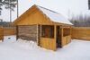 Дом с большим двором вокруг. Во дворе есть беседка и мангал. Также в доме есть баня, стоимость которой входит в цену за дом, кухня, гостиная комната и спальни.