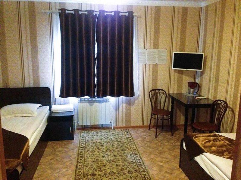 В номере: две односпальные кровати, фен, чайник, холодильник, телевизор. Собственная ванная комната.