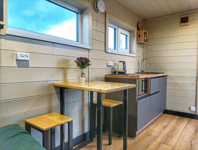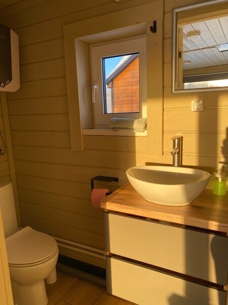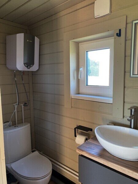 Уютный домик с теплым туалетом и кухонной зоной.