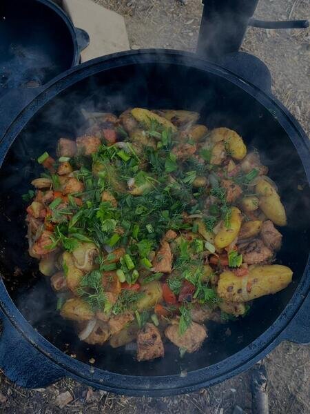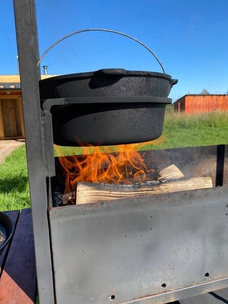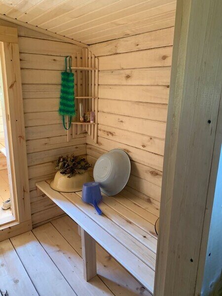 Постельное белье, каркасная печь. Основная зона для приготовления пищи расположена на улице. Это удобные стол со скамьями. Мангал, казан, барбекю, коптильня.