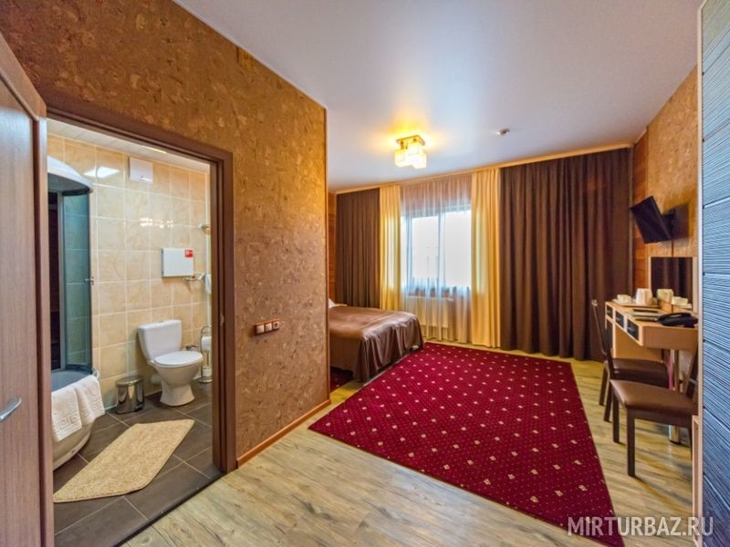Вам на выбор предлагаются 24 комфортабельных номера от категории Стандарт до категории Люкс. В них есть всё, чтобы обеспечить полноценный отдых: удобные кровати, телевизор, телефон, гостевой набор (чайник, чайные пары), фен, душевая кабина. По запросу предоставляется гладильная доска и утюг.