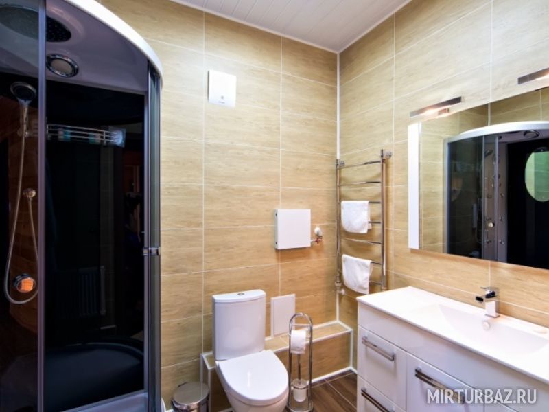 Санузел с душевой кабиной, укомплектован: