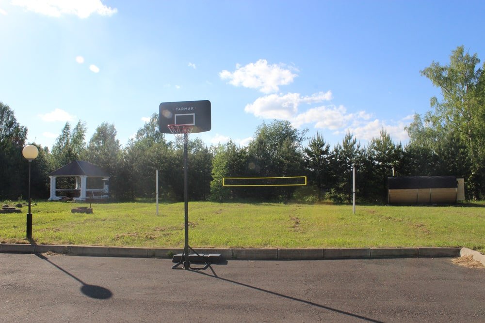 На территории гостевого дома есть все необходимое для полноценного отдыха: беседка с мангалом для барбекю, детская площадка и спортивные площадки для активного времяпрепровождения — от волейбола до настольного тенниса. Любители рыбалки также найдут здесь рай для себя, ведь это место славится своими уловами. А в 10 минутах езды находится спуск для катеров, что открывает новые горизонты для водных прогулок.