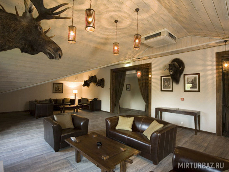 В «Охотничьем зале» с камином и зоной отдыха, можно провести неформальную встречу и переговоры. Инфраструктура комплекс разнообразна, каждый гость сможет провести досуг в соответствии со своими пожеланиями. Организуется рыбалка и охота с опытными егерями в собственных охотничьих угодьях.