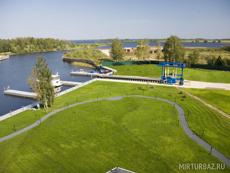 В Брейтово ориентируемся на АЗС справа и пост ДПС слева. Сразу после поста на перекрестке поворачиваете направо и двигаетесь прямо, через населенный пункт. Увидев забор и синие эллинги (ангары) нашего яхт-клуба, проезжаете вдоль забора и слева увидите въезд на территорию «Grand Adventur.
