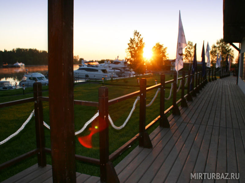 Над зданием ресторана возвышается маяк со смотровой площадкой, и после трапезы можно насладиться необыкновенно-красивым рассветом или закатом с 15-метровой высоты. На втором этаже Вас ждет кафе в таежном стиле (крепкая деревянная мебель и барная стойка, массивные балки под потолком), терраса которого выходит на водную гладь.
