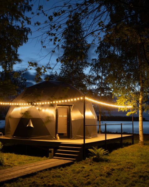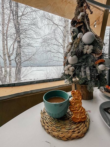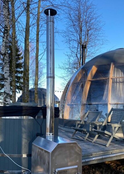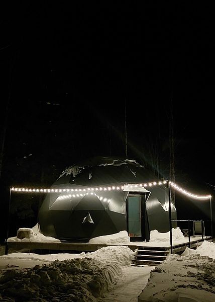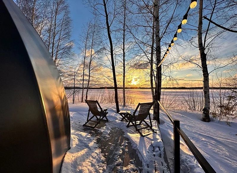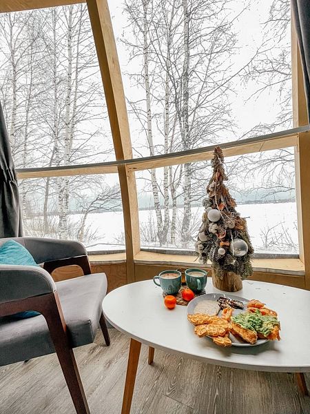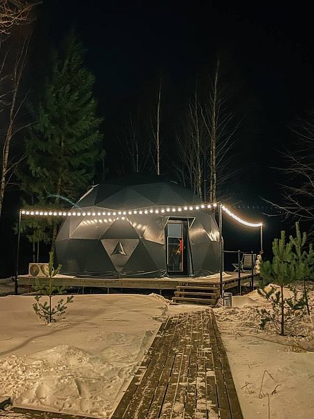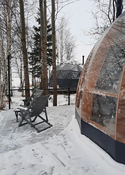 Сфера VIP ORTO с купелью и камином с видом на реку в глэмпинге «На мысу»