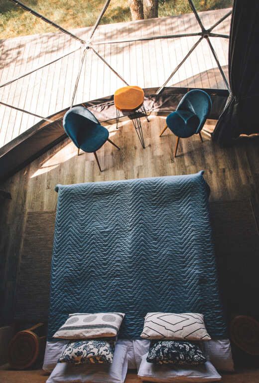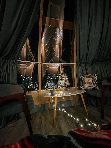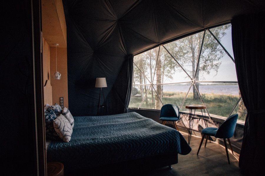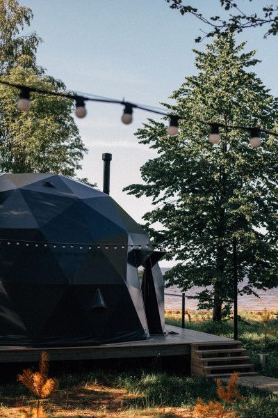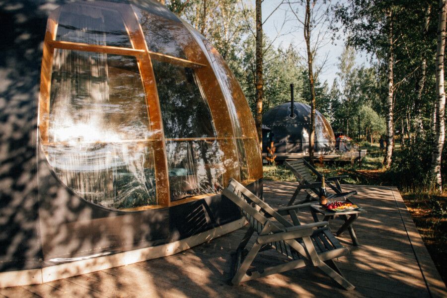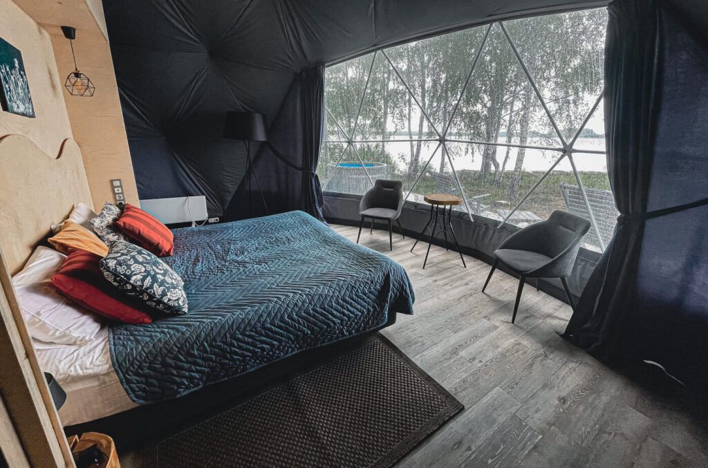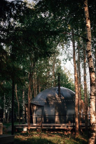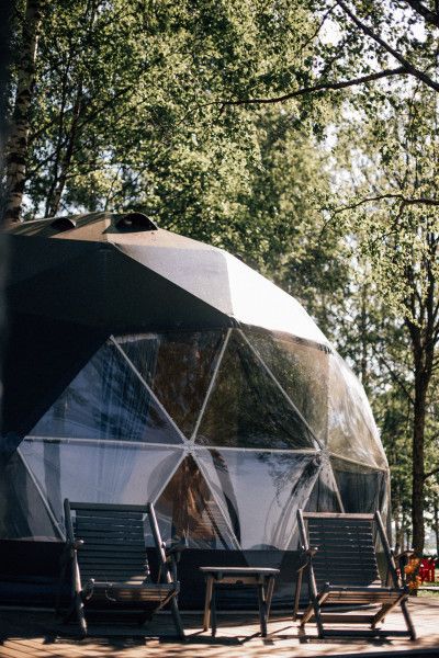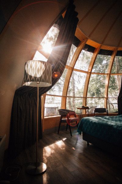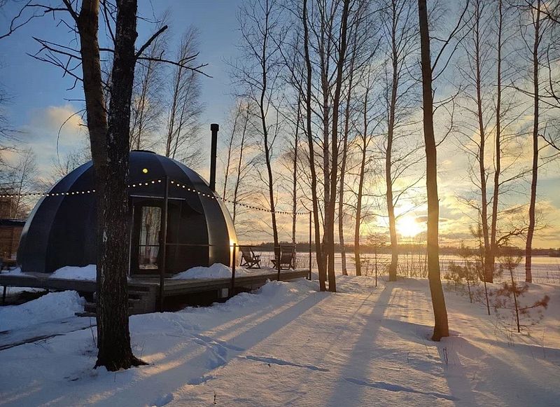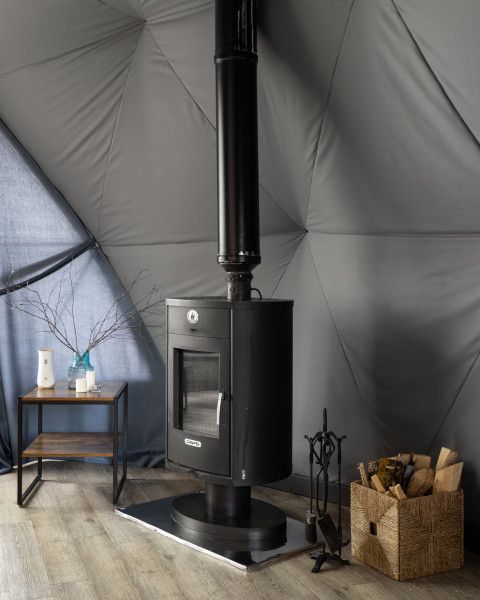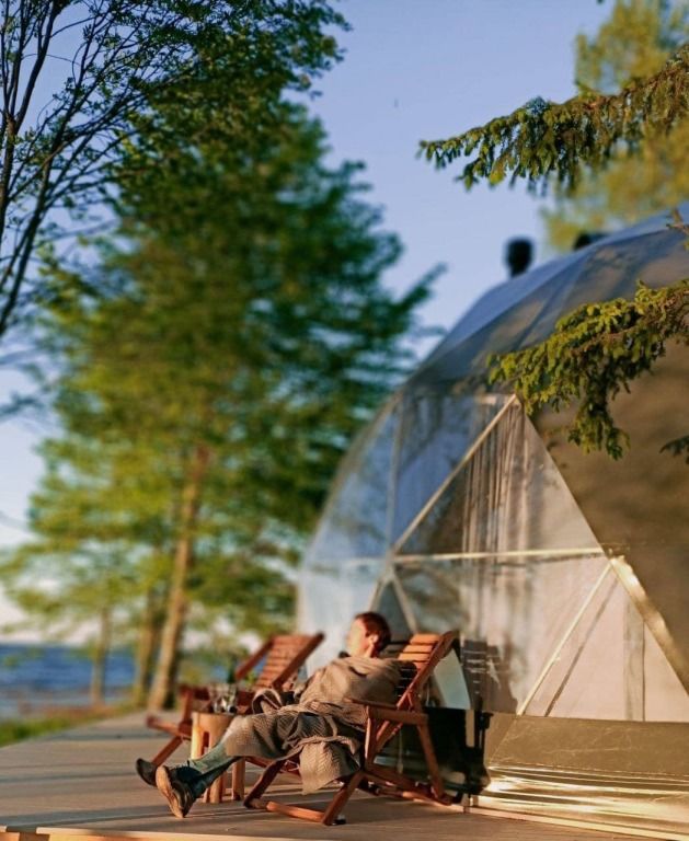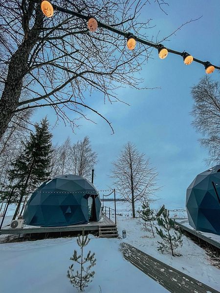Сфера ORTO с камином с видом на реку в глэмпинге «На мысу»