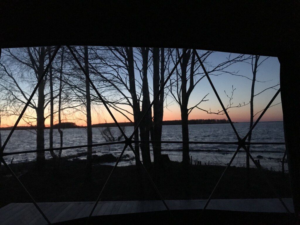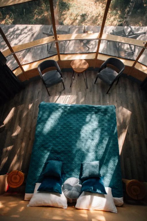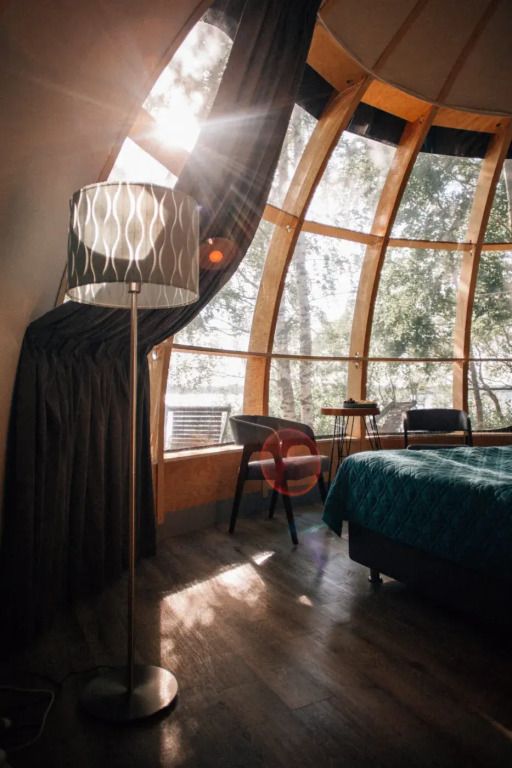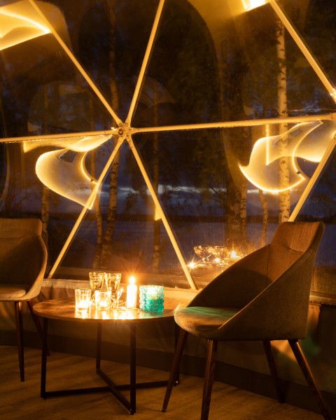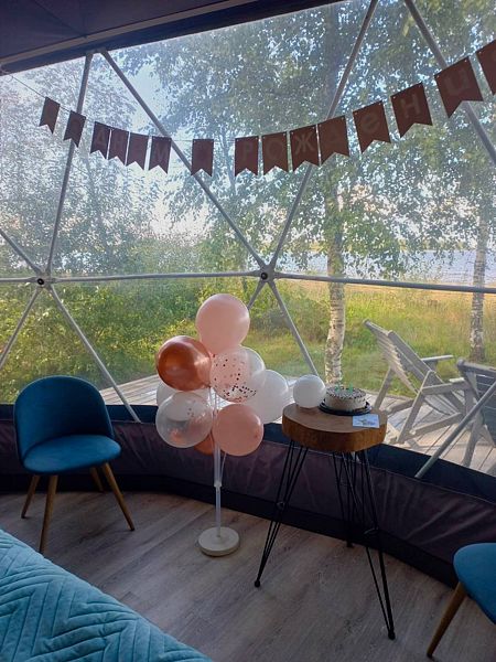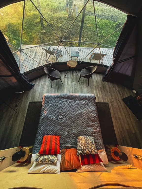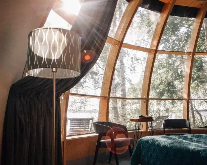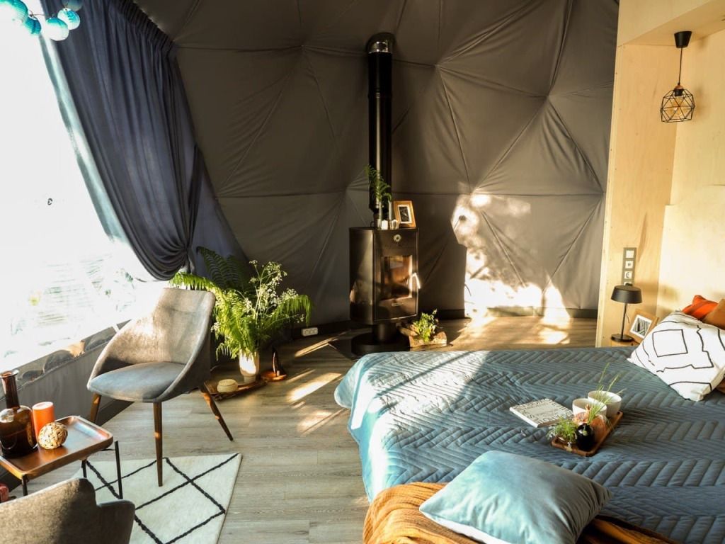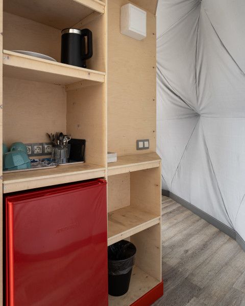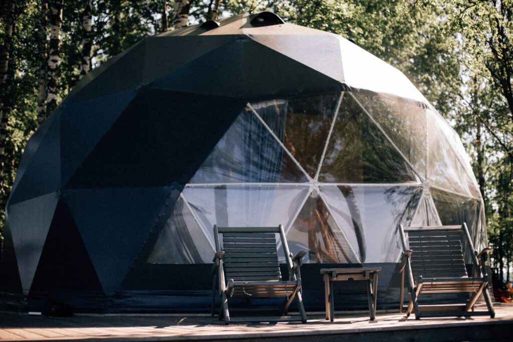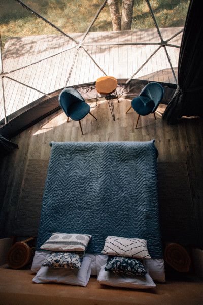 Сфера ORTO с камином с видом на реку в глэмпинге «На мысу»