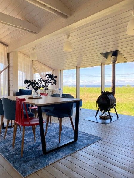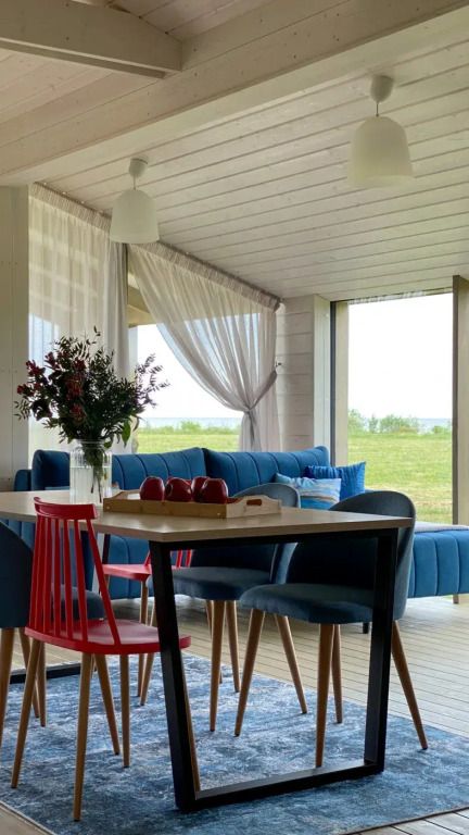 Дизайнерское оформление в прибрежном стиле не будет отвлекать вас от потрясающего вида за окном. Панорамное остекление во всю стену позволит вам максимально ощущать себя на природе. Прямо со своей террасы вы сможете наблюдать на заходящее в воду солнце и игру красок света на вечернем небе.
