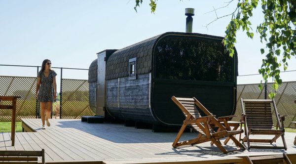 - банный комплекс с панорамной баней-бочкой, подогреваемой купелью Фурако и зоной отдыха.