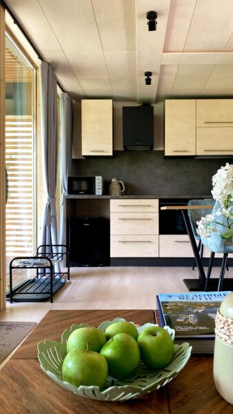 Комфортное размещение от 1 до 4 человек. Прибрежная лесная зона. Удобные кровати с ортопедическими матрасами. Собственная терраса с обеденной зоной. Мини-кухня с холодильником, плитой, чайником и посудой. Возможность работать на природе с видом на море.