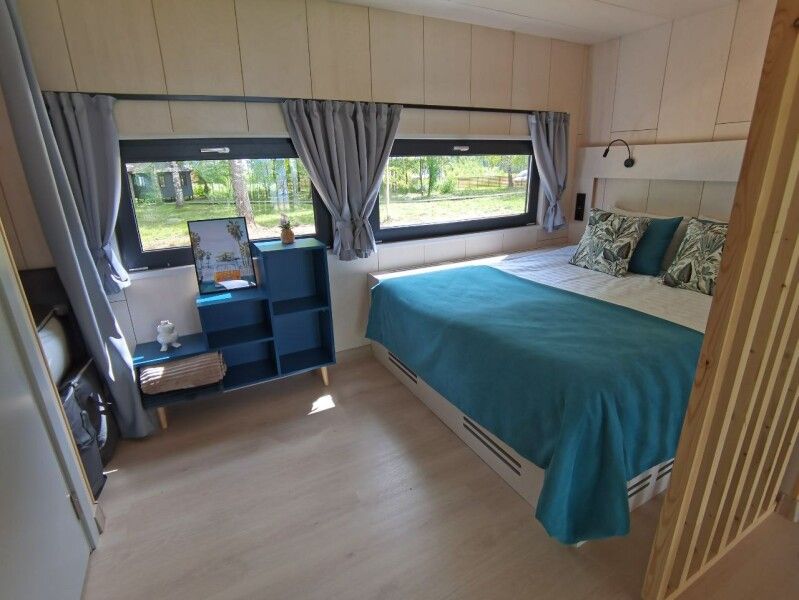 Благодаря панорамному остеклению во всех комнатах много света, но это не помешает вам выспаться, со шторами блэкаут.