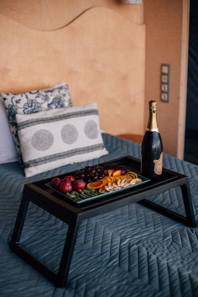 В гостиной полноценная кухня, обеденная зона, а также раскладной диван со спальным местом 160х200, телевизор. Шторы блэкаут на всех окнах позволят вам прекрасно выспаться в любое время дня и ночи. Дополнительные розетки расположены на крытой террасе, чтобы можно было работать на свежем воздухе.