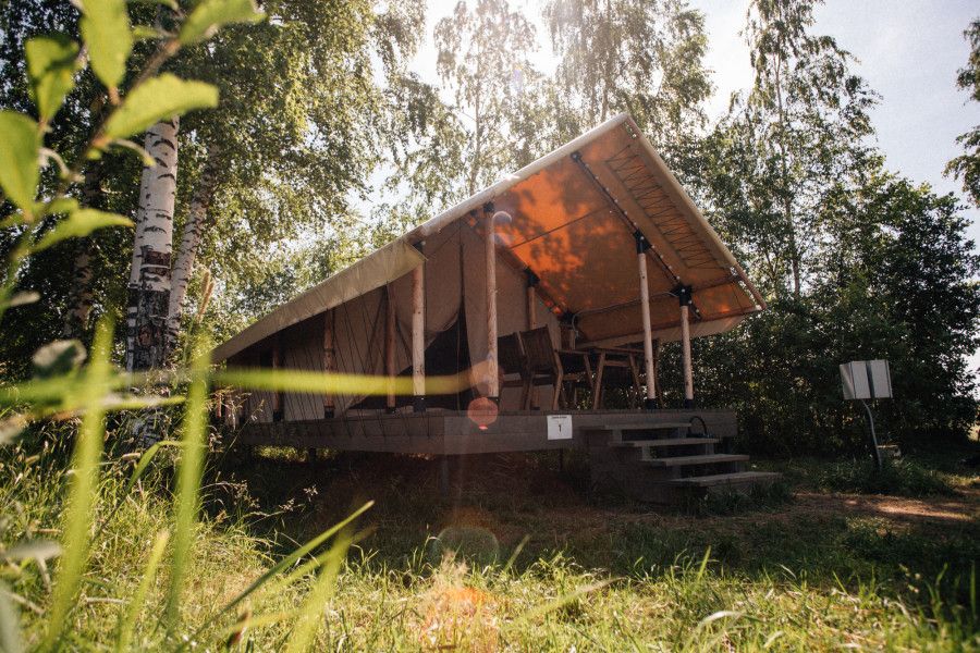 Гости глэмпинга располагаются в отдельной уединенной зоне с собственным BBQ-павильоном, костровой площадкой и панорамной смотровой вышкой.