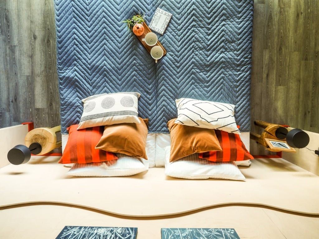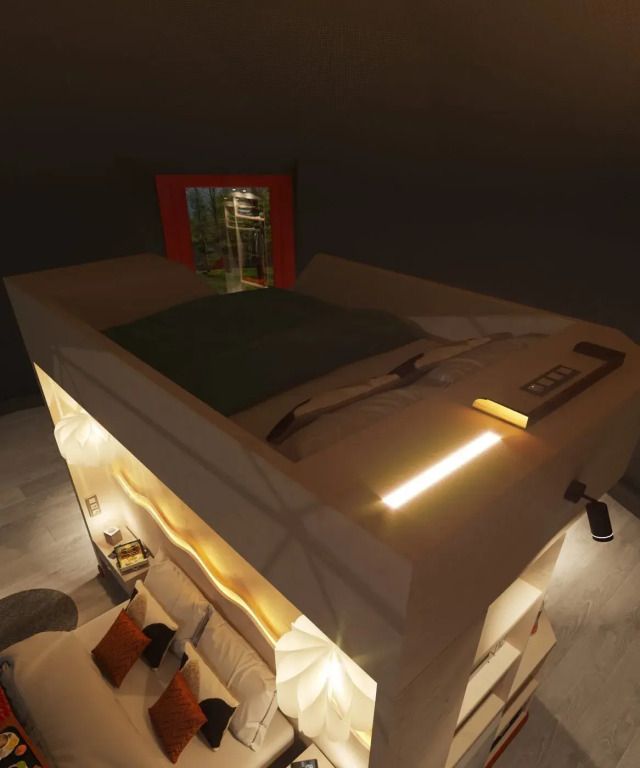 Двуспальная кровать 160х200 с ортопедическими матрасами, а также раскладной диван в скандинавском стиле со спальным местом 140х200. Шторы блэкаут на всех окнах позволят вам прекрасно выспаться в любое время дня и ночи. Около каждого спального места — розетки и USB входы для гаджетов.