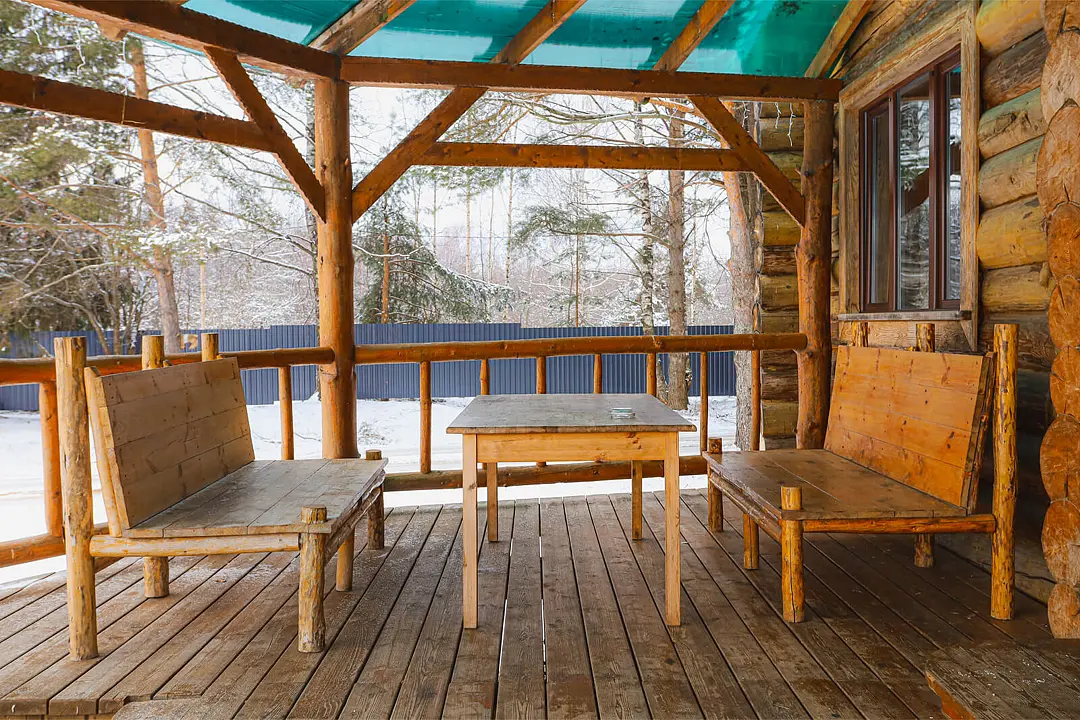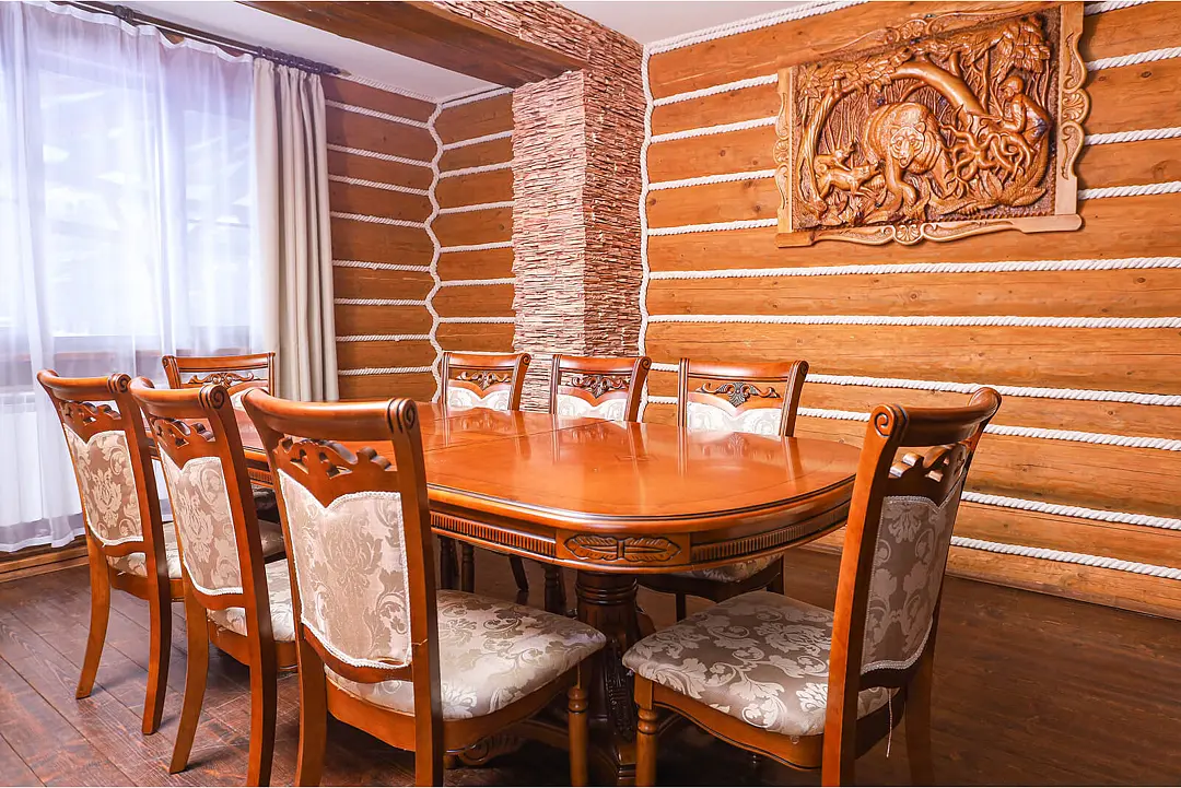 Просторный сруб с панорамными окнами, четырьмя спальнями и уютной гостиной для тёплых вечеров в кругу друзей и семьи. На втором этаже – балкон для утреннего кофе, а внизу большая терраса для отдыха на свежем воздухе.