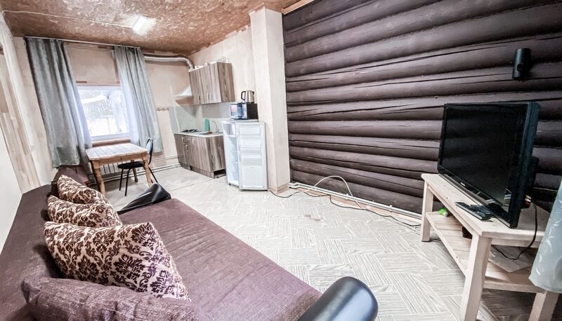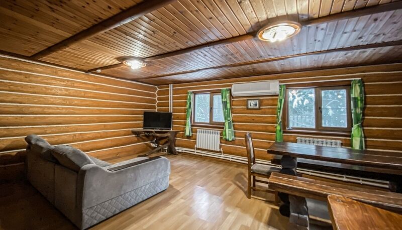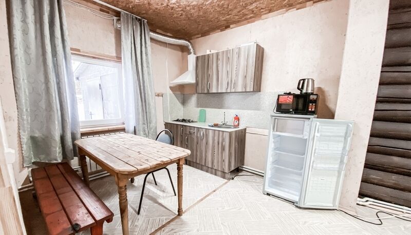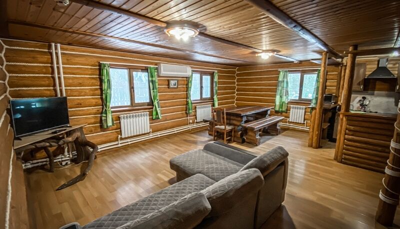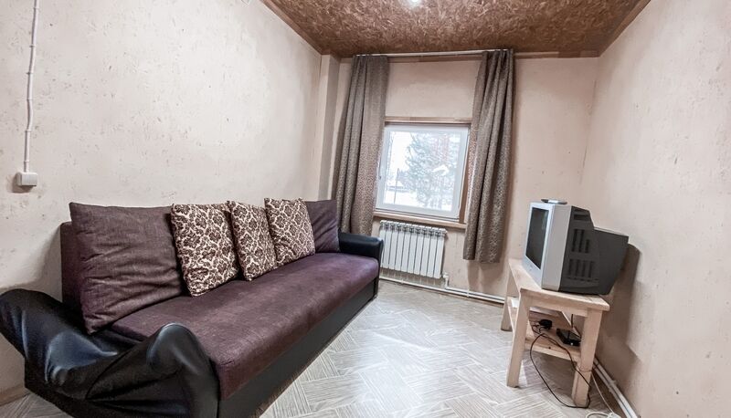 Это одноэтажный коттедж на 6 основных мест с русской печью. В доме есть все для Вашего комфорта: кухня-гостиная (кухонный гарнитур, холодильник, микроволновая печь, чайник, набор посуды, обеденная зона), ванная комната (душ, туалет), три спальные комнаты (в каждой по две односпальных кровати). Собственная парковка.