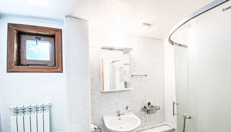 Это двухэтажный коттедж, состоящий из двух одинаковых половинок, каждая из которых может вместить до 5-и человек (4-основных места и одно дополнительное). В каждой из половинок есть все для Вашего комфорта: кухня-гостиная (кондиционер, кухонный гарнитур, холодильник, микроволновая печь, чайник, набор посуды, диван-кровать, обеденная зона, телевизор), ванная комната (душ, туалет), две спальные комнаты (в каждой по две односпальные кровати). Собственная парковка.