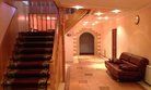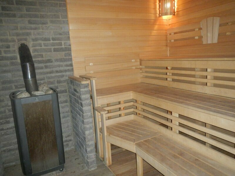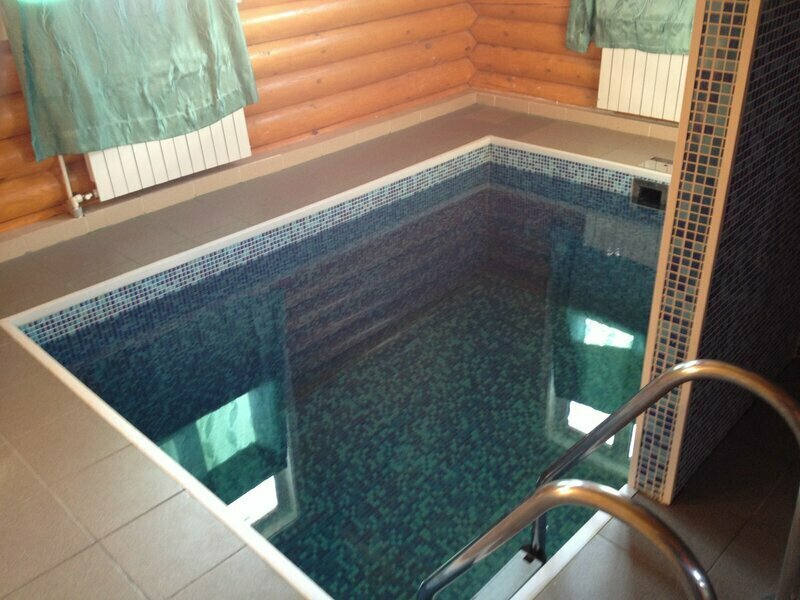 Баня представляет собой двухэтажный деревянный дом, на первом этаже расположены парилка, бассейн, душевая комната, туалетная комната и большая гостиная с телевизором, а также кухня со всем необходимым: посуда, чайник. На втором этаже 2 комнаты отдыха.