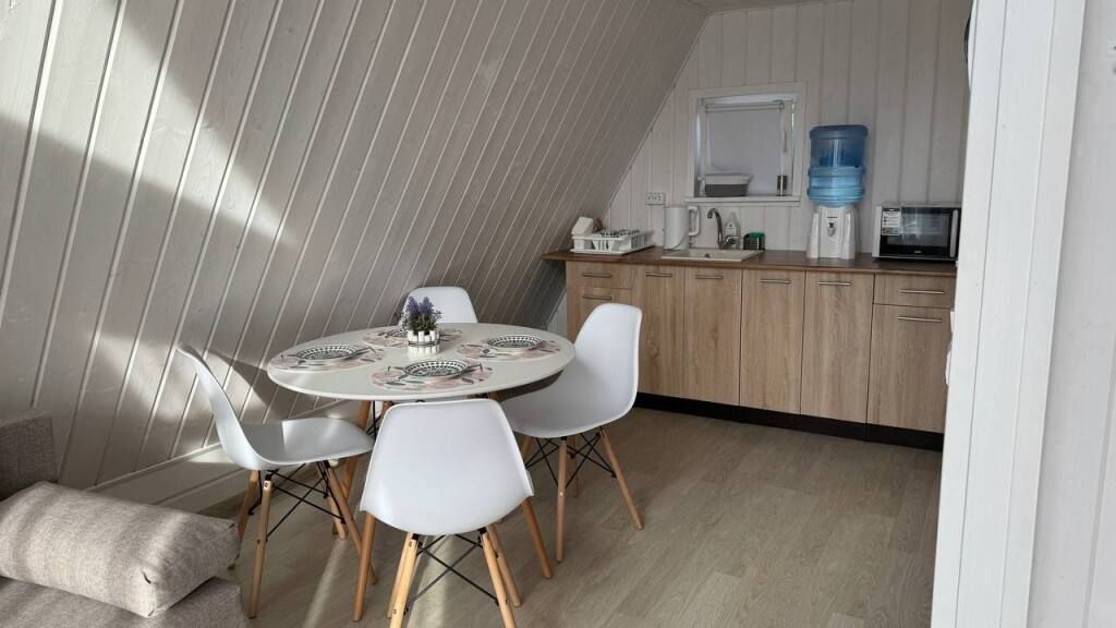 В вашем распоряжении полностью оборудованный кухонный уголок со столом, стульями, электрочайником, набором посуды и микроволновой печью. Бесплатный Wi-Fi обеспечит связь с внешним миром.