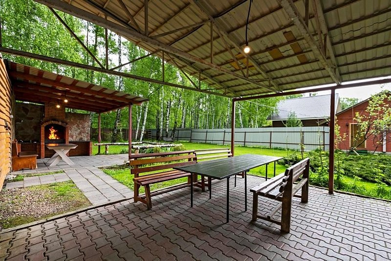 Скучно не будет, ведь в коттедже к услугам отдыхающих площадка для барбекю.