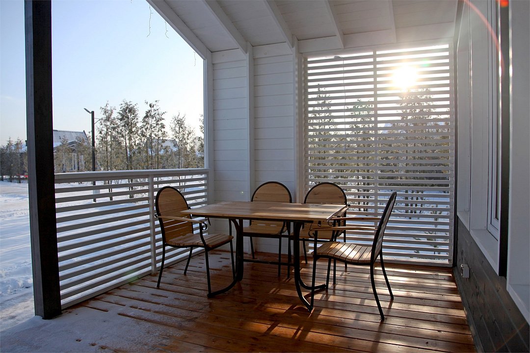 Отдельный домик с террасой, 3-мя спальнями. Семиместный.Холл совмещенный с кухней и раскладным диваном.Услуги и удобства