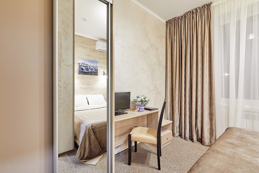 кабельное телевидение, Wi-Fi, кондиционер, светильник, настольные лампы, фен, ванная комната, душевая кабина, банные полотенца, две односпальные или большая двуспальная кровать, вешалки, письменный стол, багажная тумба, зеркало, мини-бар, набор посуды, обслуживание номеров, чайник, унитаз, раковина, косметическое зеркало, питьевая вода, ковровое покрытие, отопление, вид на город, кулер на этаже, вид во двор, меню подушек, стаканы, столовые приборы, стул, туалетные средства, туалет, телевизор с плоским экраном, мини-холодильник, москитная сетка, шкаф-купе, гостиничная парфюмерияВ номере