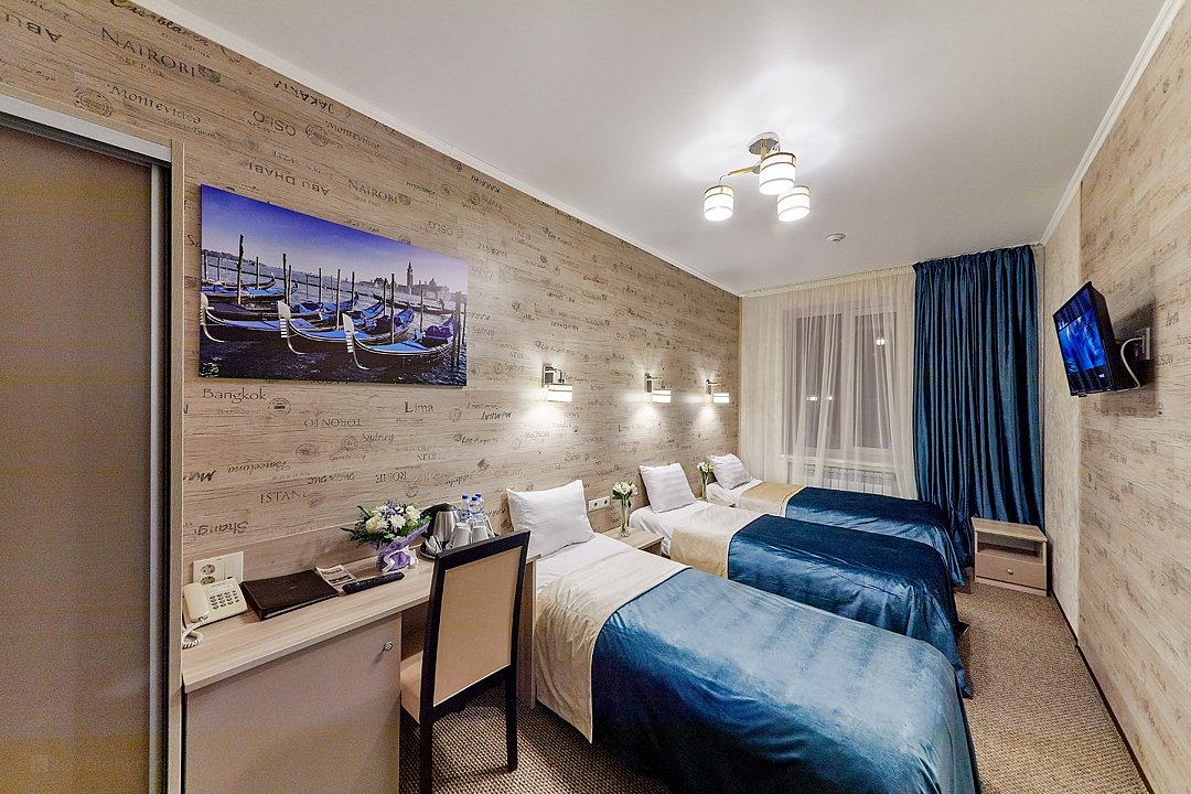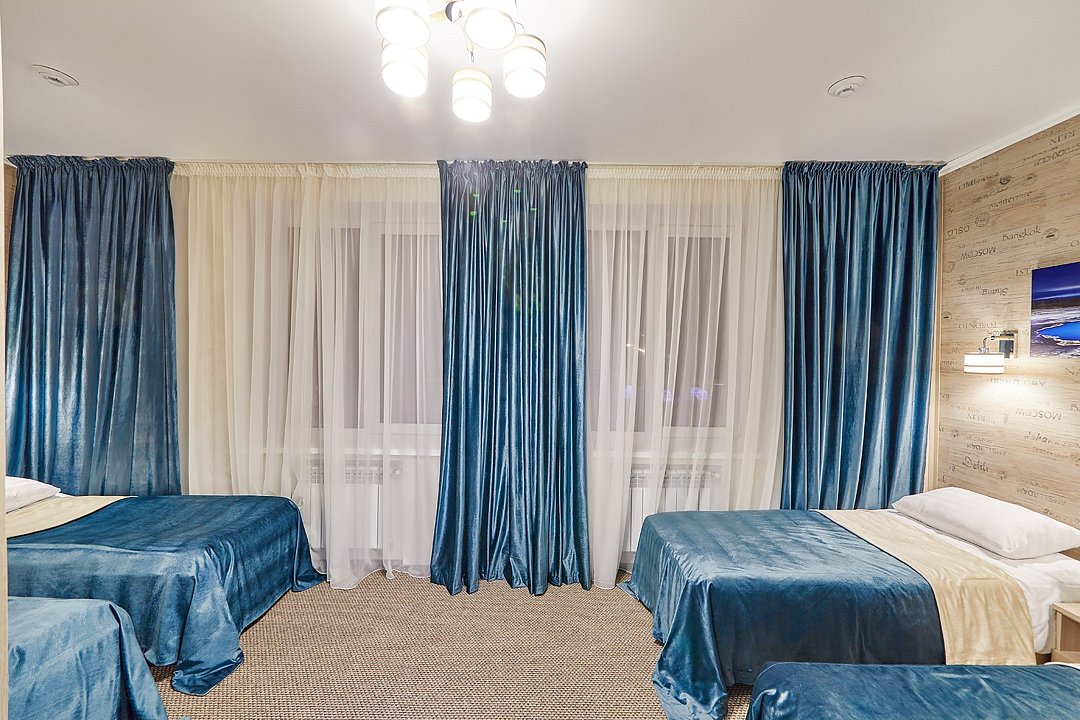 Оснащение номера включает три 1-спальные кровати, гардероб, ЖК-телевизор с широким выбором каналов, телефон, чайник, чай, питьевая вода, фен, посуда. Гостиничные номера включают ванную комнату, оборудованную душевой кабиной. Предоставляется комплект полотенец и парфюмерии индивидуального пользования.Услуги и удобства