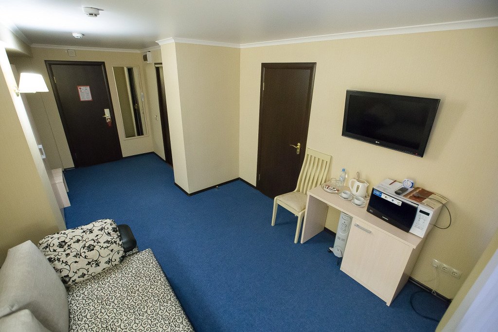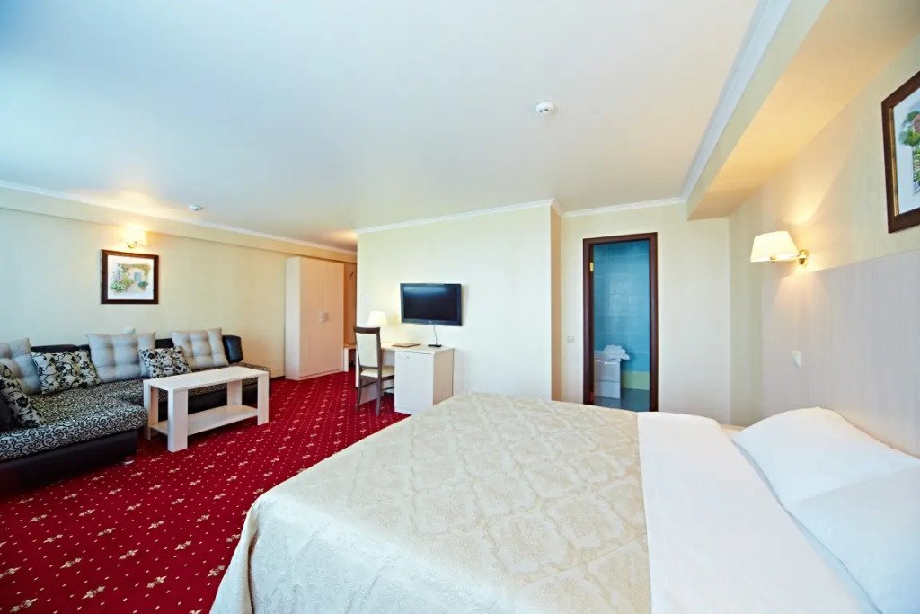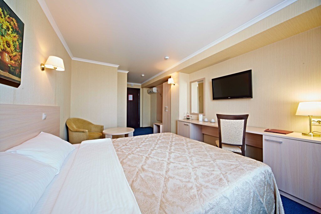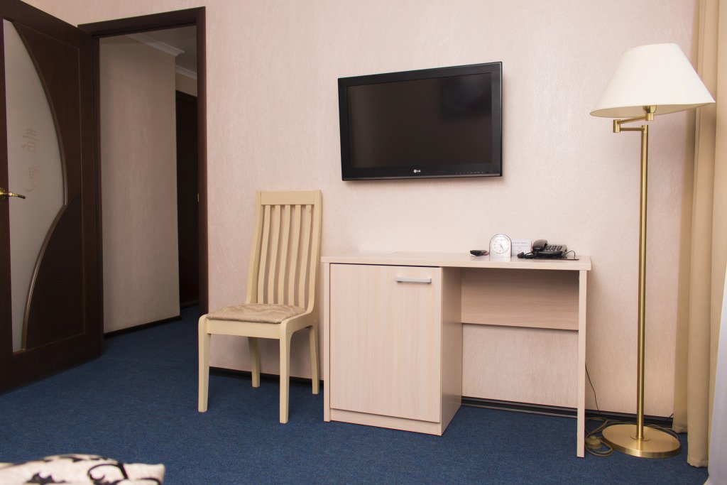 В номере вы найдёте будильник, душ, телевизор, халат и тапочки. Оснащение зависит от выбранной категории номера.