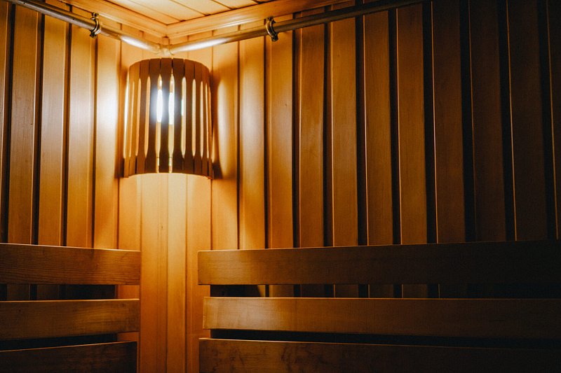 Две сауны с бассейнами в вашем распоряжении. Вы сможете прогреть организм в финской парной, затем взбодриться в душевых и окунуться в просторный прохладный бассейн. После этого вас ждет комната отдыха, обеденный зал и топчан с видом на зеленые просторы.