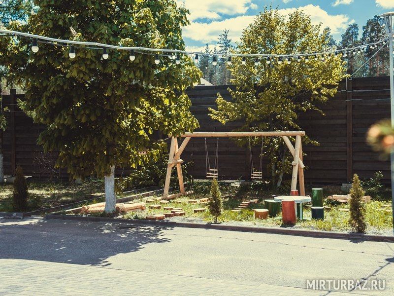 Деревянные качели и другие развлечения.