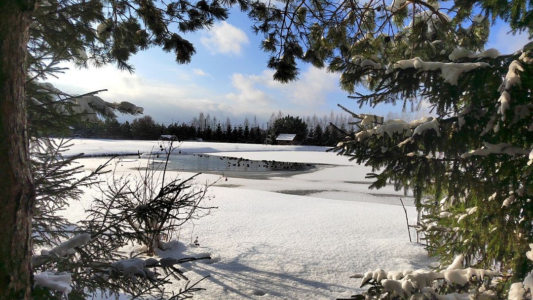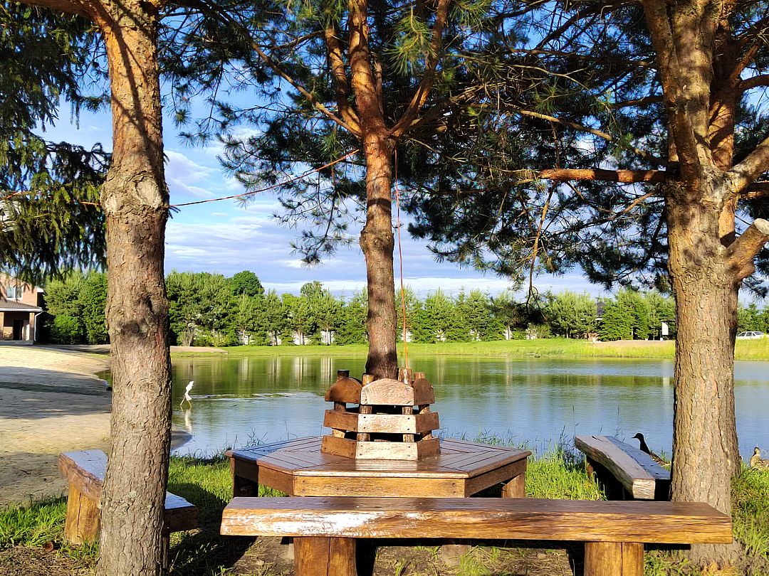 - Живописный пейзаж. Дом расположен на берегу озера в окружении сосен и елей. Два пирса, дикие уточки. Закрытая территория 2 га.