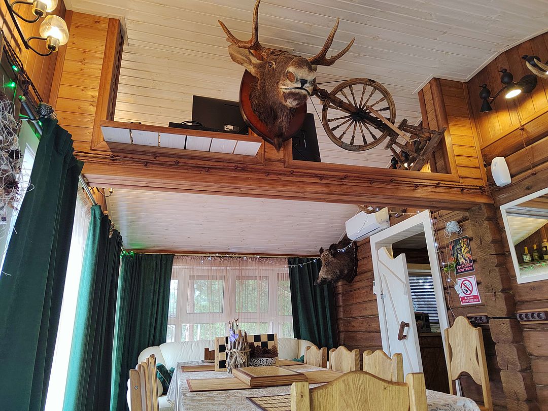 1-этажный дом «СОКОЛ» с сауной на дровах. Оформлен в «охотничьем» стиле.