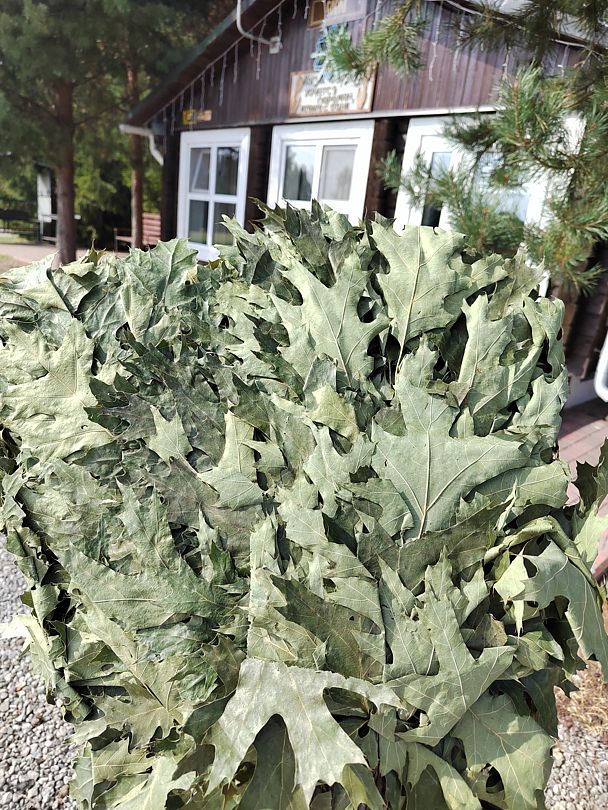 Свежие венички из канадского дуба, дарящие приятный, терпкий аромат леса и 90 С в парной — идеальное сочетание для здорового тела и духа!