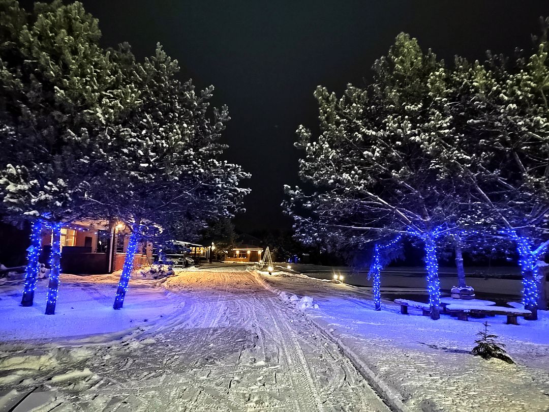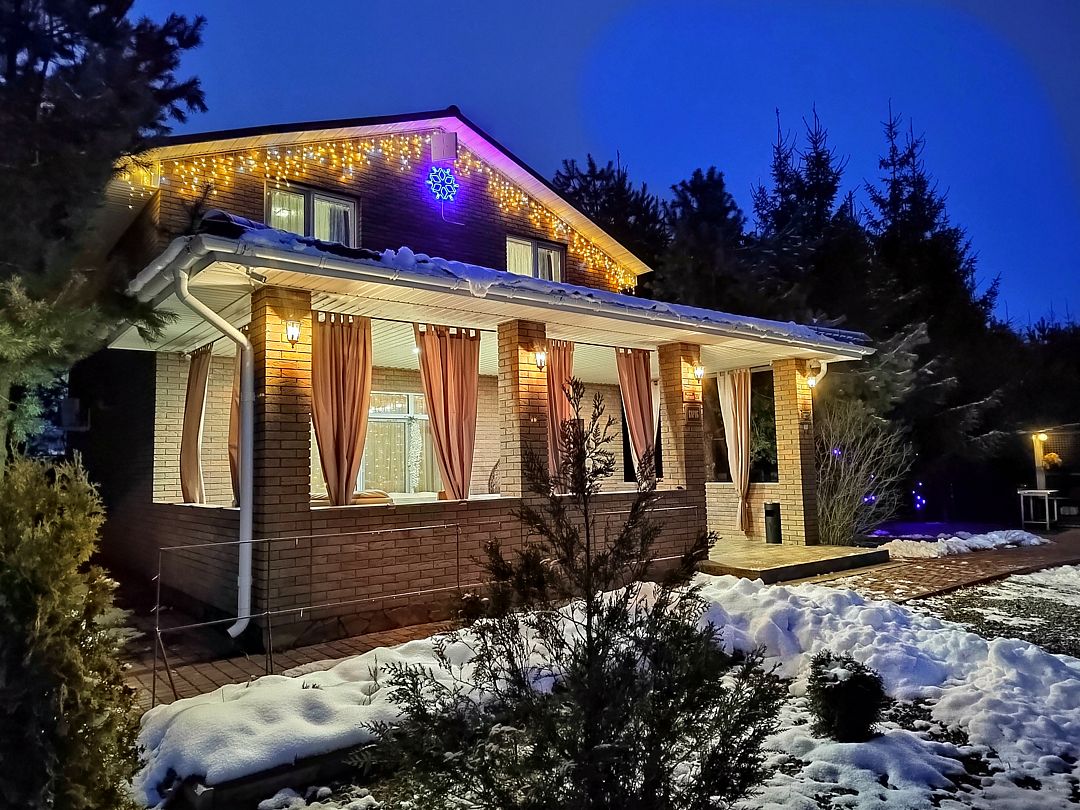 - Красивое наружное освещение дома и территории в вечернее время.