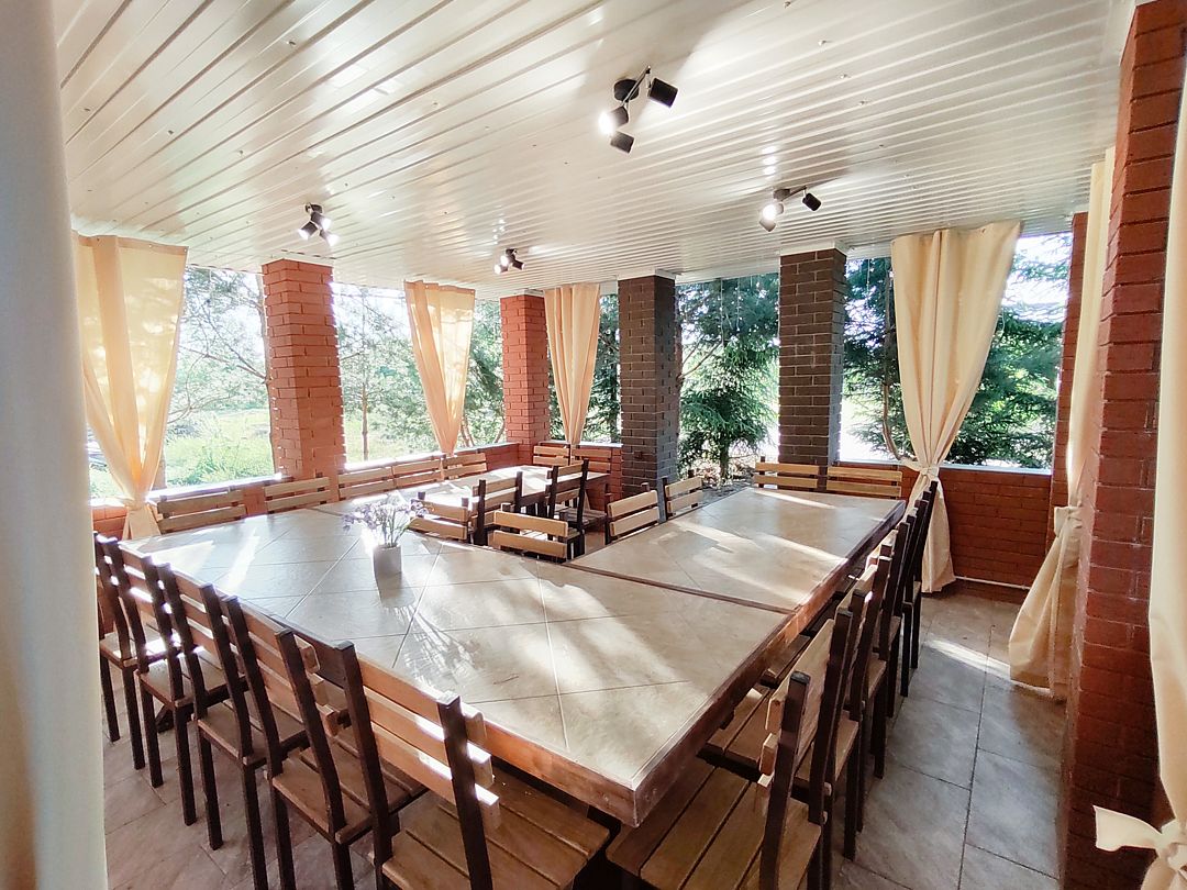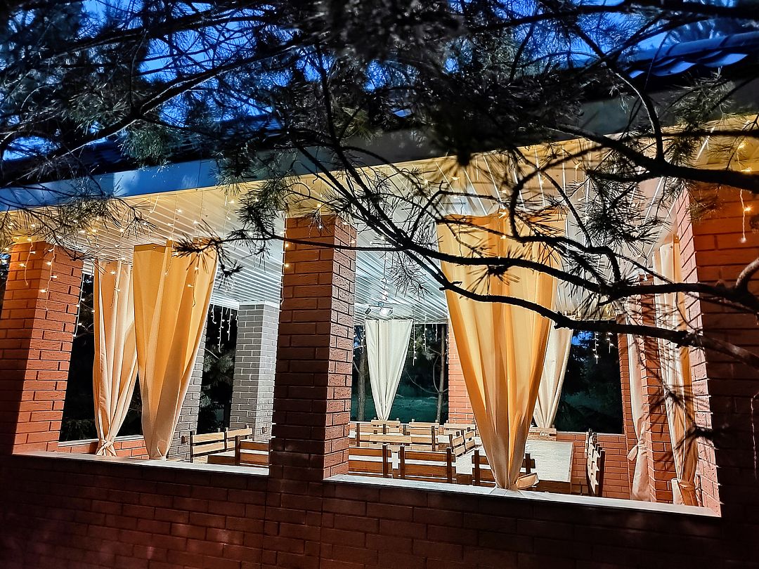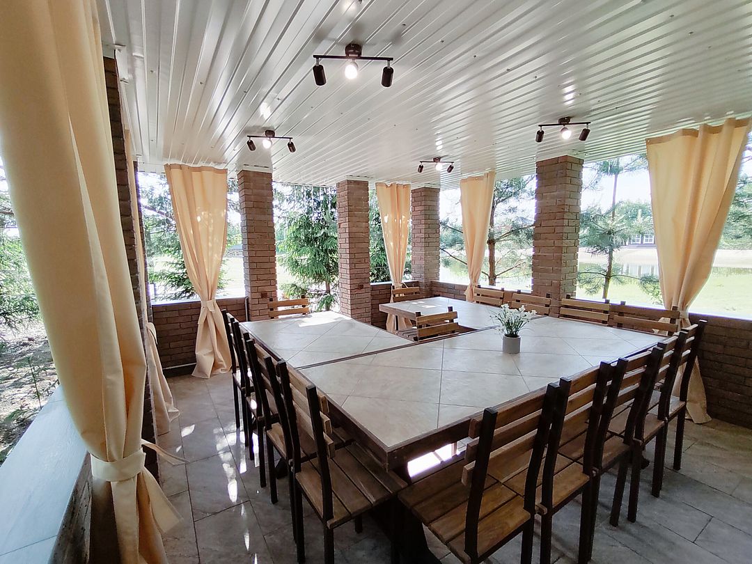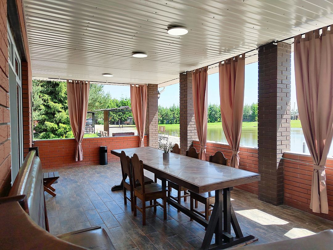 - Большая терраса с тентовыми шторами.