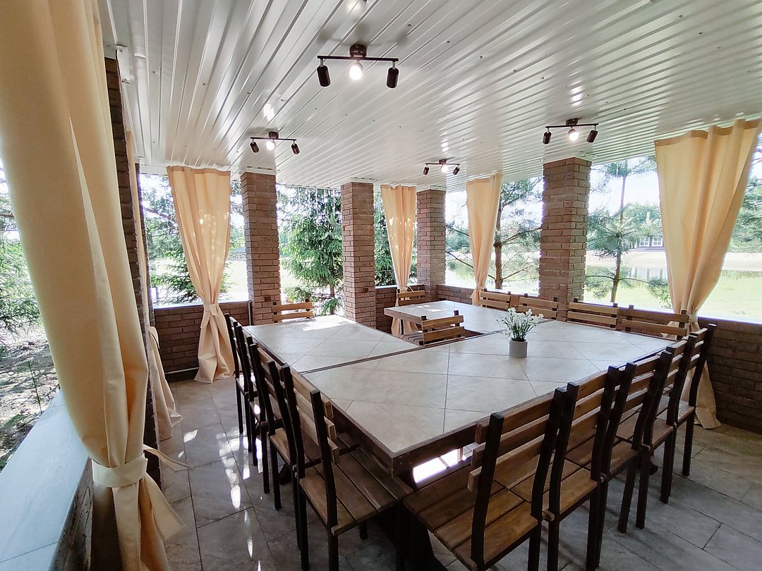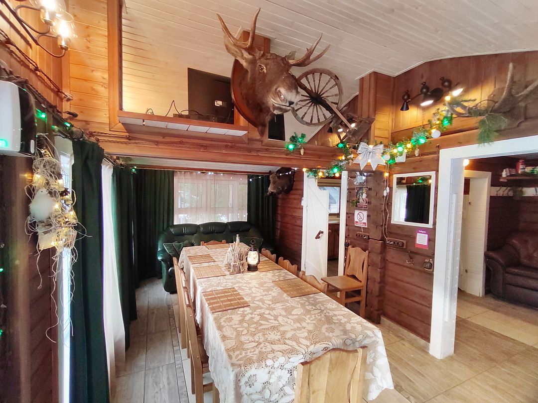 - За обеденным дубовым столом в доме «Сокол» свободно могут разместиться 8-10 человек.