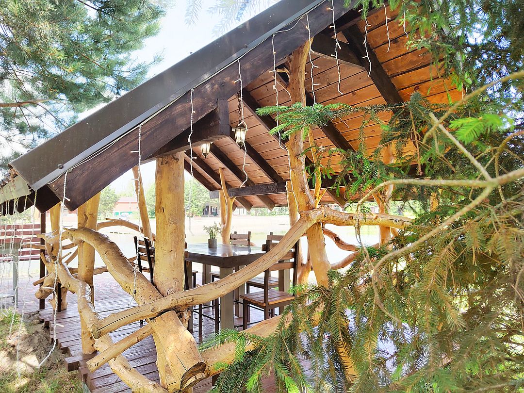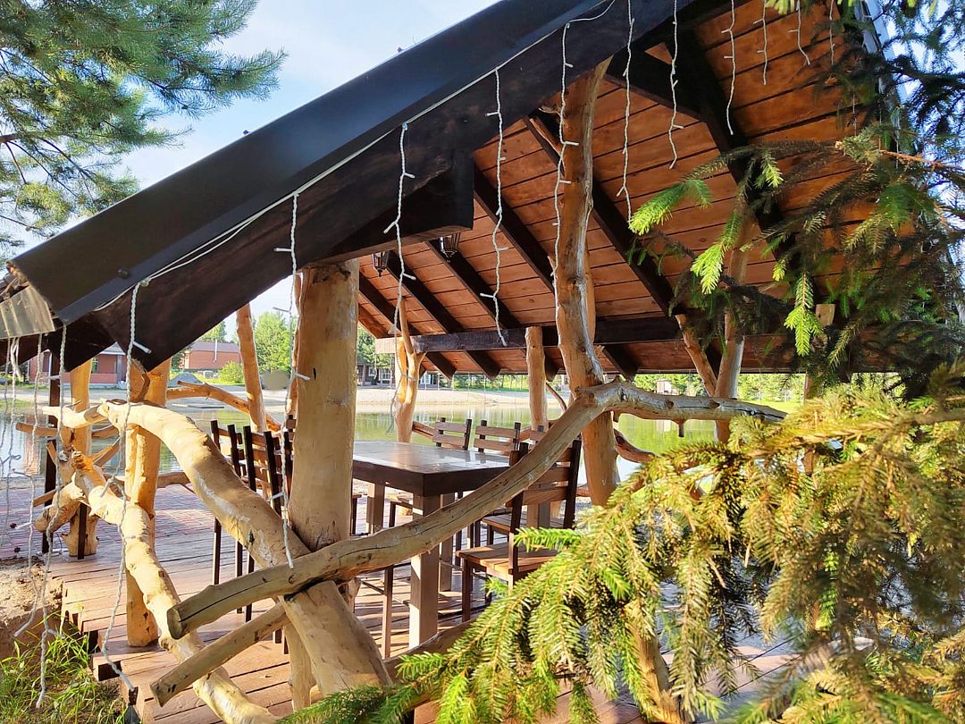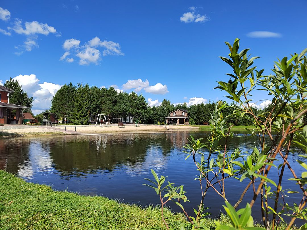 В экопарке вы можете арендовать один из трех живописных домов, расположенных на берегу озера в окружении сосен. Вас ждет пляж и закрытая территория, а также баня на дровах с банным чаном для релакса.