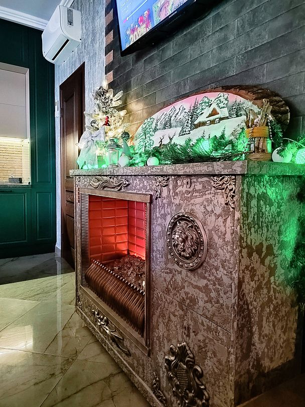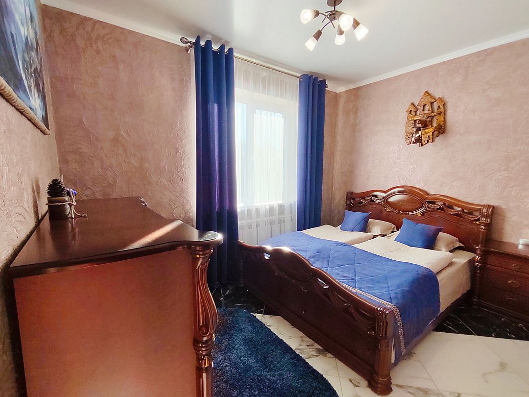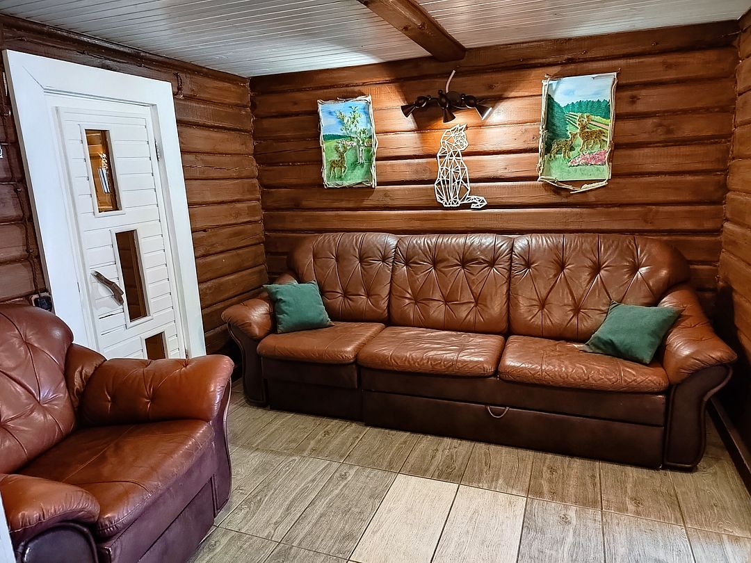- Спальных мест — 5 (два раскладных 2-спальных кожаных дивана + доп. место раскладная кровать).