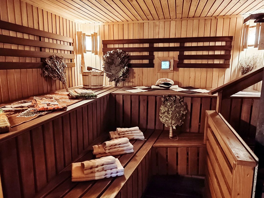 Инфраструктура: зона отдыха, полотенца, дубовые веникиТемпература парения: 90 °CСвежие венички из канадского дуба, дарящие приятный, терпкий аромат леса и 90 С в парной — идеальное сочетание для здорового тела и духа!