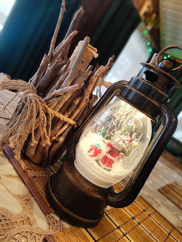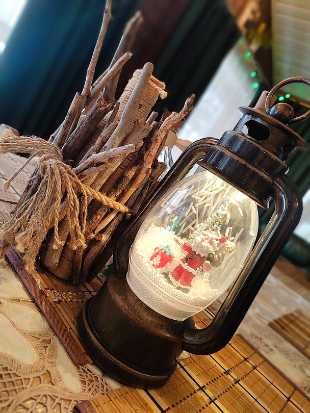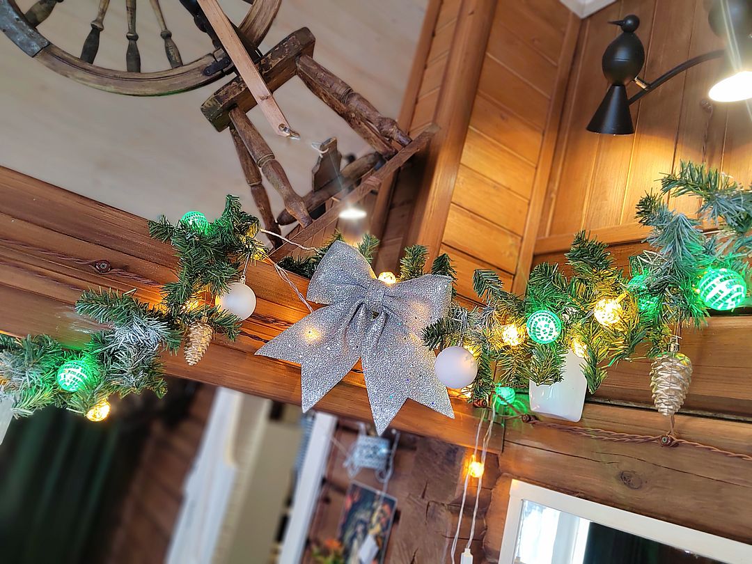 - Чан с еловыми ветками, шишками, эфирными маслами и лавандой.