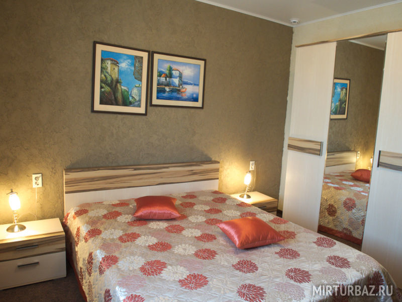 В коттедже 6 комфортабельных номеров с кондиционерами, душевой и WC. В каждом номере телевизор, спутниковое TV, бесплатный Wi-Fi. В коттедже на первом этаже есть кухня, которой Вы можете воспользоваться.